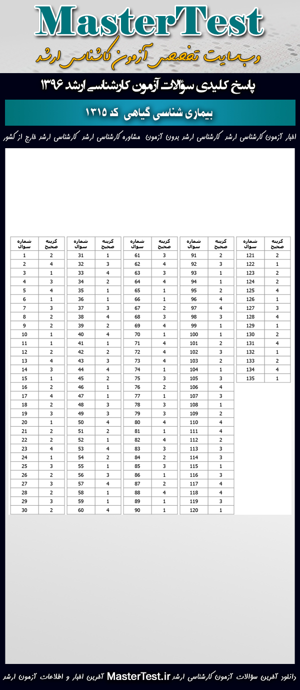 دانلود سؤالات آزمون کارشناسی ارشد ۹۶ رشته بیماریشناسی گیاهی (کد ۱۳۱۵)