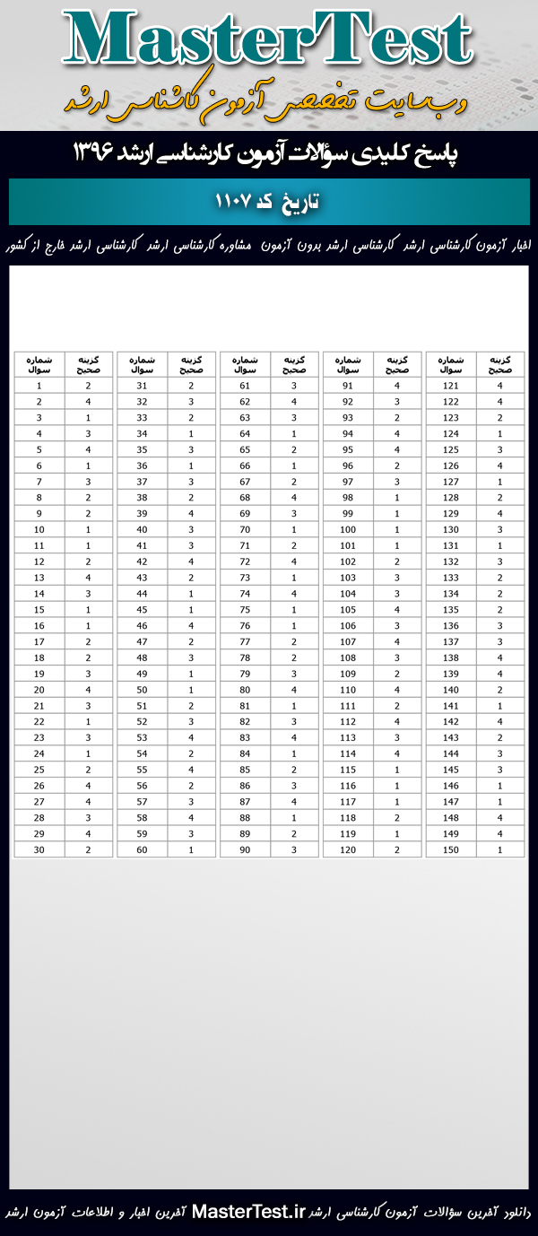 پاسخ ( کلید ) سؤالات کارشناسی ارشد ۹۶ مجموعه تاریخ