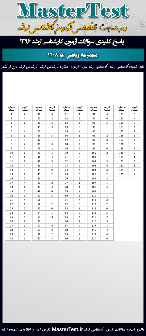 کاربران عزیز مسترتست میتوانند دفترچه سؤالات آزمون کارشناسی ارشد دانشگاههای سراسری و آزاد اردیبهشت ماه ۱۳۹۶ مجموعه ریاضی شامل گرایشهایِ