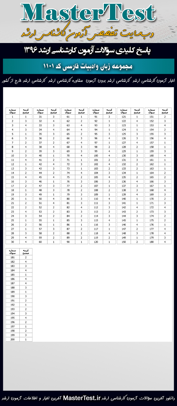 کاربران عزیز مسترتست میتوانند دفترچه سؤالات آزمون کارشناسی ارشد دانشگاههای سراسری و آزاد اردیبهشت ماه ۱۳۹۶ مجموعه زبان و ادبیات فارسی شامل گرایشهایِ