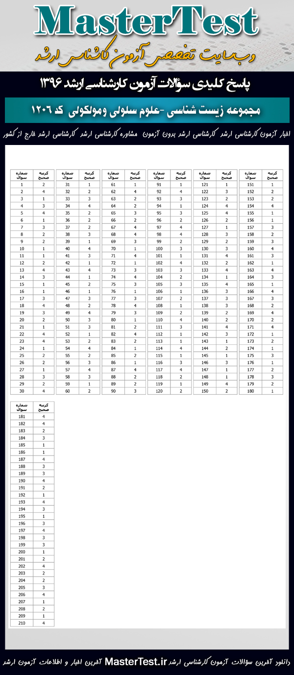 کاربران عزیز مسترتست میتوانند دفترچه سؤالات آزمون کارشناسی ارشد دانشگاههای سراسری و آزاد اردیبهشت ماه ۱۳۹۶ مجموعه زیستشناسی سلولی و مولکولی شامل گرایشهایِ