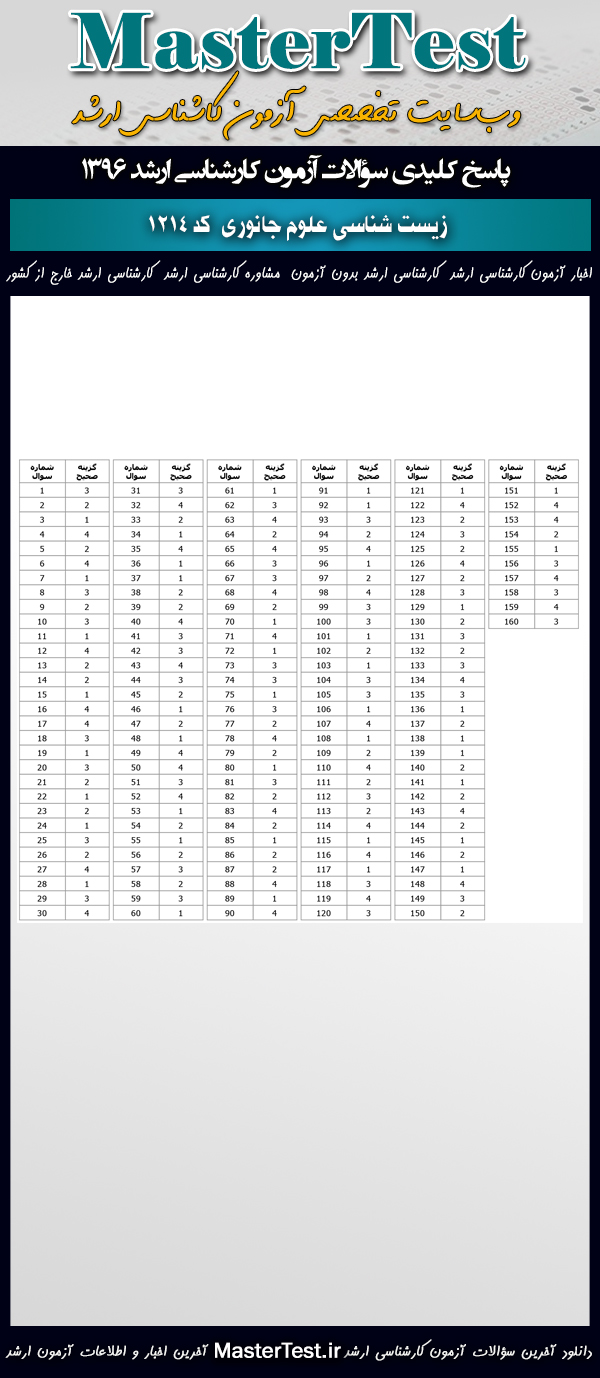 کاربران عزیز مسترتست میتوانند دفترچه سؤالات آزمون کارشناسی ارشد دانشگاههای سراسری و آزاد اردیبهشت ماه ۱۳۹۶ رشته زیستشناسی جانوری شامل گرایشهایِ