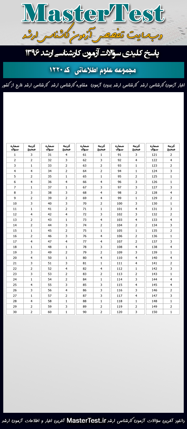 دانلود سؤالات آزمون کارشناسی ارشد ۹۶ مجموعه علوم اطلاعاتی (کد ۱۲۲۰)