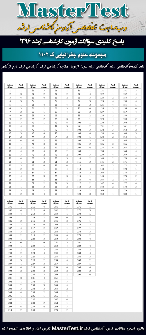 کاربران عزیز مسترتست میتوانند دفترچه سؤالات آزمون کارشناسی ارشد دانشگاههای سراسری و آزاد اردیبهشت ماه ۱۳۹۶ مجموعه علوم جغرافیایی شامل گرایشهایِ