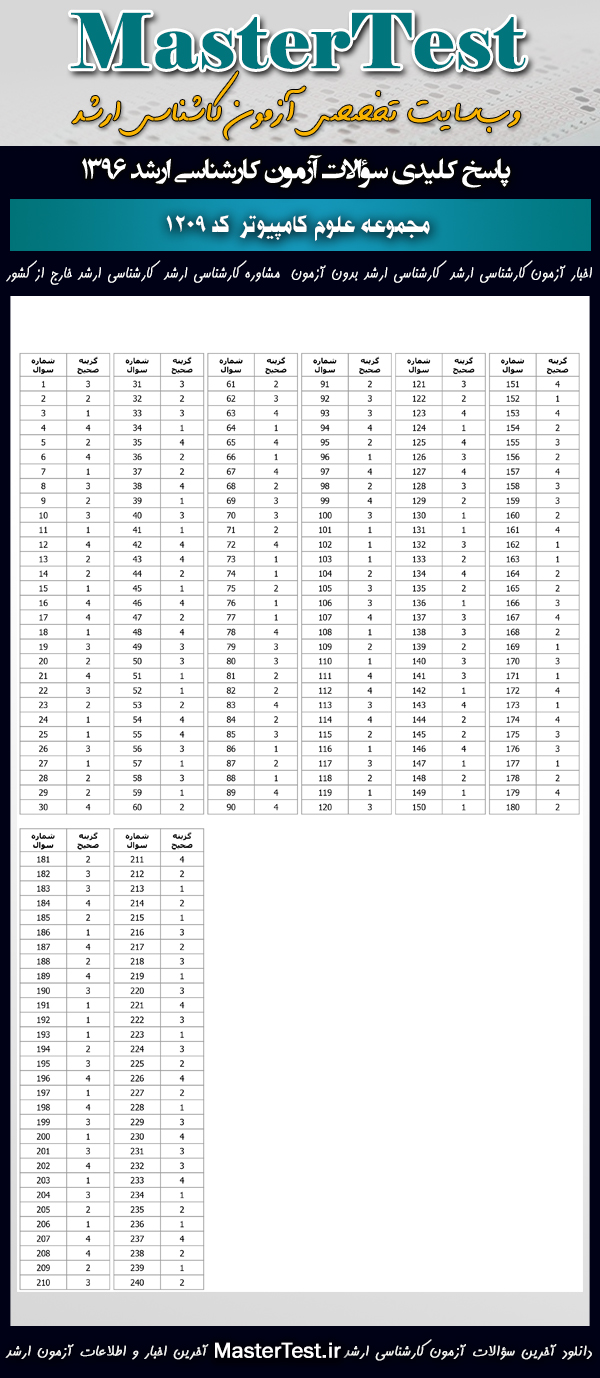 کاربران عزیز مسترتست میتوانند دفترچه سؤالات آزمون کارشناسی ارشد دانشگاههای سراسری و آزاد اردیبهشت ماه ۱۳۹۶ مجموعه علوم کامپیوتر شامل گرایشهایِ