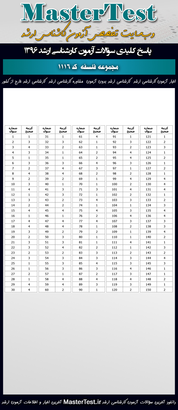 کاربران عزیز مسترتست میتوانند دفترچه سؤالات آزمون کارشناسی ارشد دانشگاههای سراسری و آزاد اردیبهشت ماه ۱۳۹۶ مجموعه فلسفه شامل گرایشهایِ