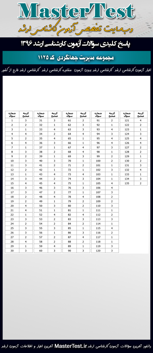 کاربران عزیز مسترتست میتوانند دفترچه سؤالات آزمون کارشناسی ارشد دانشگاههای سراسری و آزاد اردیبهشت ماه ۱۳۹۶ مجموعه مدیریت جهانگردی شامل گرایشهایِ