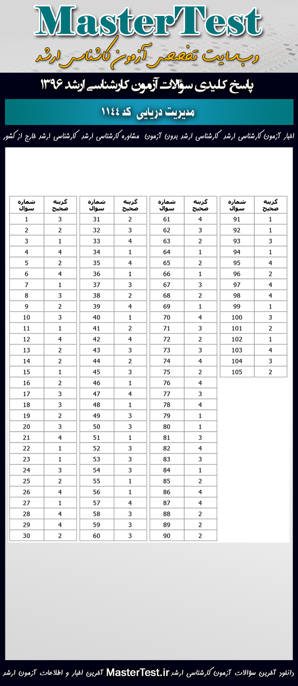 کاربران عزیز مسترتست میتوانند دفترچه سؤالات آزمون کارشناسی ارشد دانشگاههای سراسری و آزاد اردیبهشت ماه ۱۳۹۶ رشته مدیریت دریایی شامل گرایشهایِ