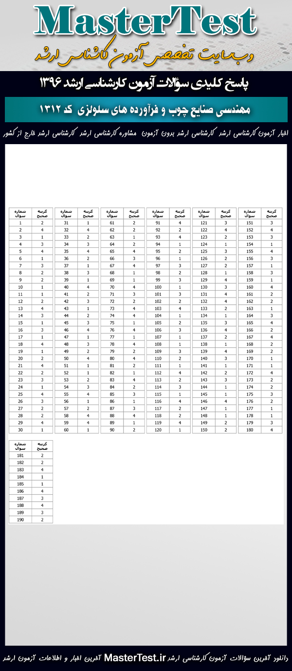 کاربران عزیز مسترتست میتوانند دفترچه سؤالات آزمون کارشناسی ارشد دانشگاههای سراسری و آزاد اردیبهشت ماه ۱۳۹۶ رشته مهندسی صنایع چوب و فرآوردههای سلولزی شامل گرایشهایِ