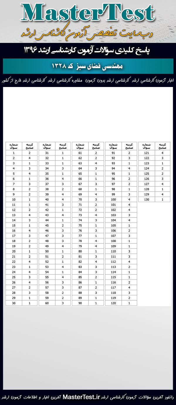 دانلود سؤالات آزمون کارشناسی ارشد ۹۶ رشته مهندسی فضای سبز (کد ۱۳۲۸)