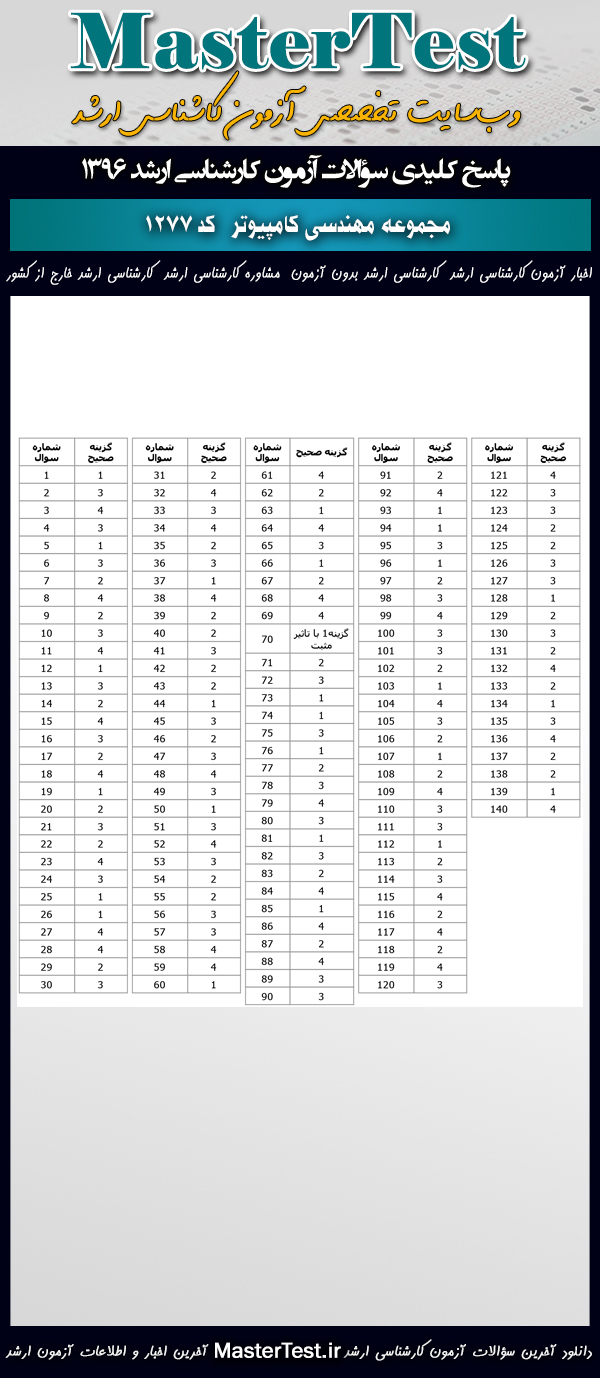 کاربران عزیز مسترتست میتوانند دفترچه سؤالات آزمون کارشناسی ارشد دانشگاههای سراسری و آزاد اردیبهشت ماه ۱۳۹۶ رشته مهندسی کامپیوتر شامل گرایشهایِ