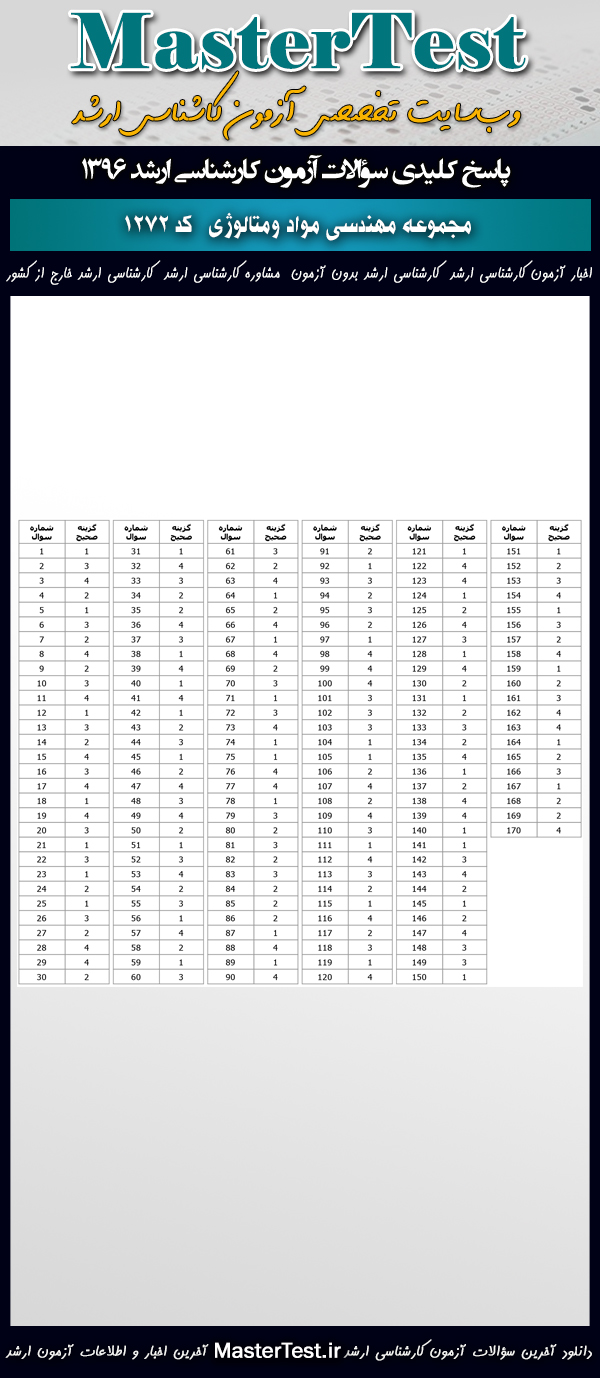 کاربران عزیز مسترتست میتوانند دفترچه سؤالات آزمون کارشناسی ارشد دانشگاههای سراسری و آزاد اردیبهشت ماه ۱۳۹۶ مجموعه مهندسی مواد و متالورژی شامل گرایشهایِ