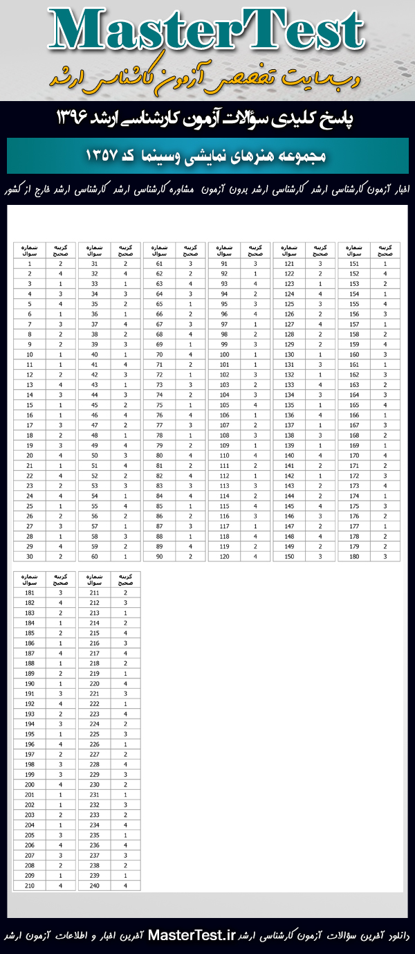 کاربران عزیز مسترتست میتوانند دفترچه سؤالات آزمون کارشناسی ارشد دانشگاههای سراسری و آزاد اردیبهشت ماه ۱۳۹۶ مجموعه هنرهای نمایشی و سینما شامل گرایشهایِ