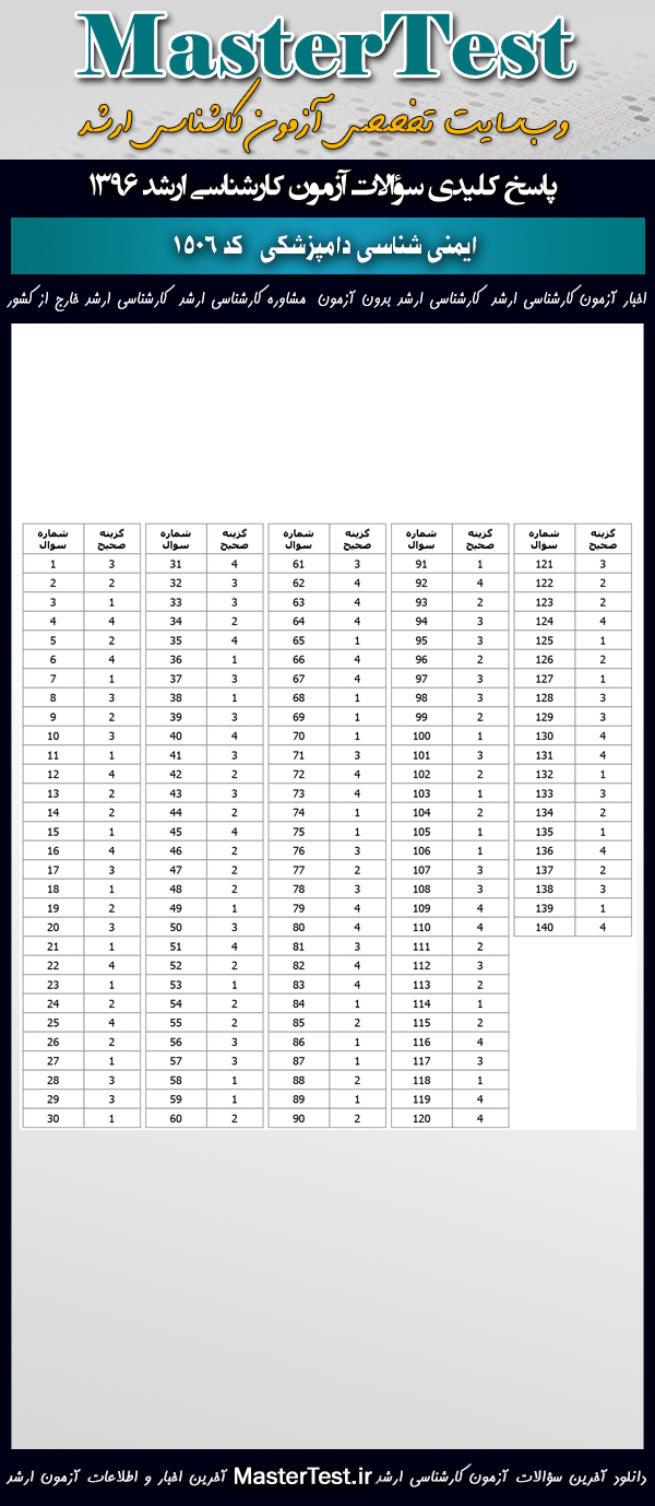 دانلود سؤالات آزمون کارشناسی ارشد ۹۶ رشته ایمنیشناسی دامپزشکی (کد ۱۵۰۶)