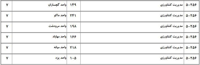 با توجه به این که تغییرات دانشگاههای پذیرنده یک رشته در مقطع کارشناسی ارشد در سالهای مختلف تغییرات زیادی ندارد، دانشگاههای جداول زیر که مربوط به آزمون کارشناسی ارشد سال گذشته است، میتواند به داوطلبان عزیز جهت اطلاع از گرایشهای کارشناسی ارشد مدیریت کشاورزی و نیز دانشگاههایی که در دورههای مختلف روزانه، شبانه، پردیس، غیرانتفاعی، پیام نور و دانشگاه آزاد اﺳﻼمی در رشته مدیریت کشاورزی پذیرش دارند، کمک کند.