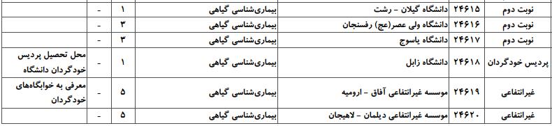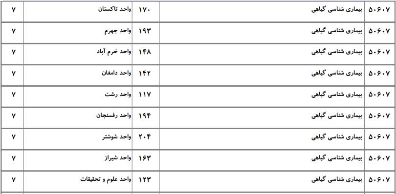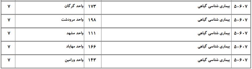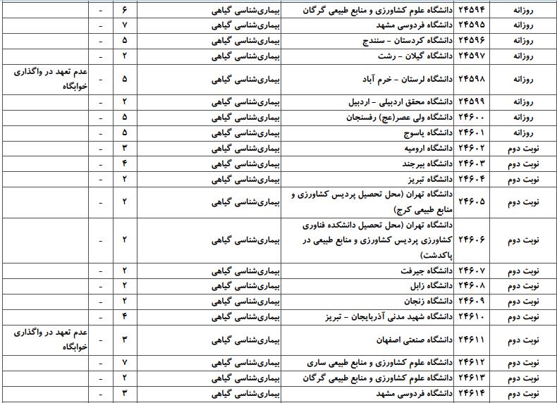 با توجه به این که تغییرات دانشگاههای پذیرنده یک رشته در مقطع کارشناسی ارشد در سالهای مختلف تغییرات زیادی ندارد، دانشگاههای جداول زیر که مربوط به آزمون کارشناسی ارشد سال گذشته است، میتواند به داوطلبان عزیز جهت اطلاع از گرایشهای کارشناسی ارشد بیماریشناسی گیاهی و نیز دانشگاههایی که در دورههای مختلف روزانه، شبانه، پردیس، غیرانتفاعی، پیام نور و دانشگاه آزاد اﺳﻼمی در رشته بیماریشناسی گیاهی پذیرش دارند، کمک کند.