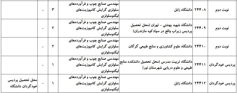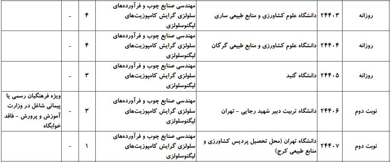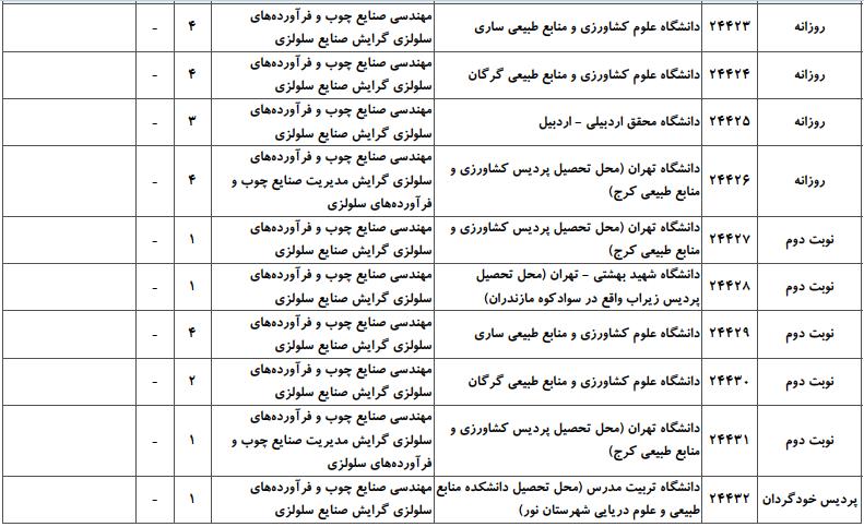 دانشگاه های دارای پذیرش کارشناسی ارشد مهندسی صنایع چوب و فرآوردههای سلولزی در دفترچه انتخاب رشته کارشناسی ارشد مشخص خواهند شد.