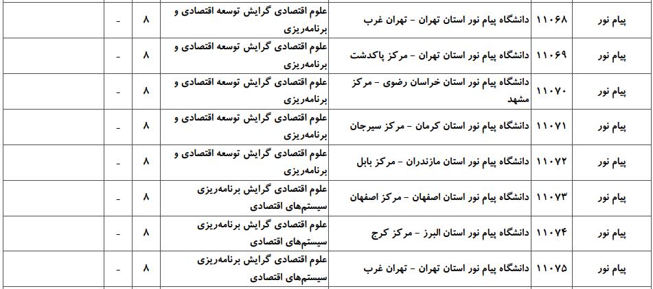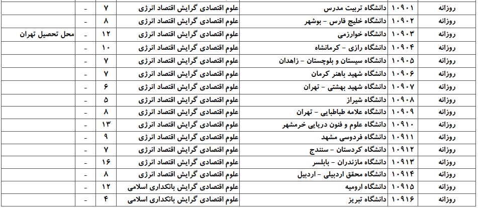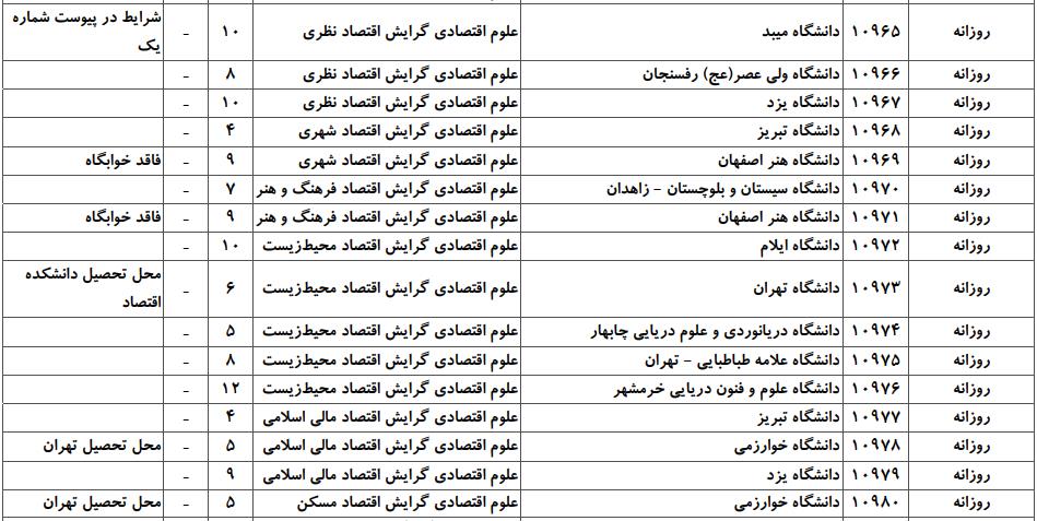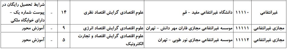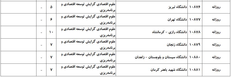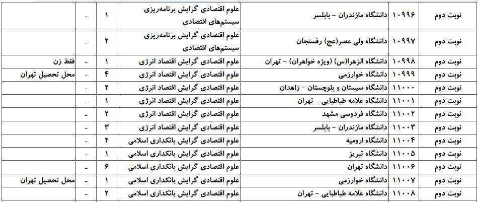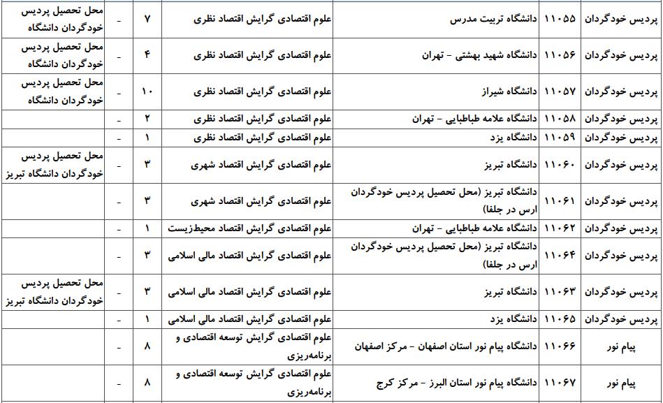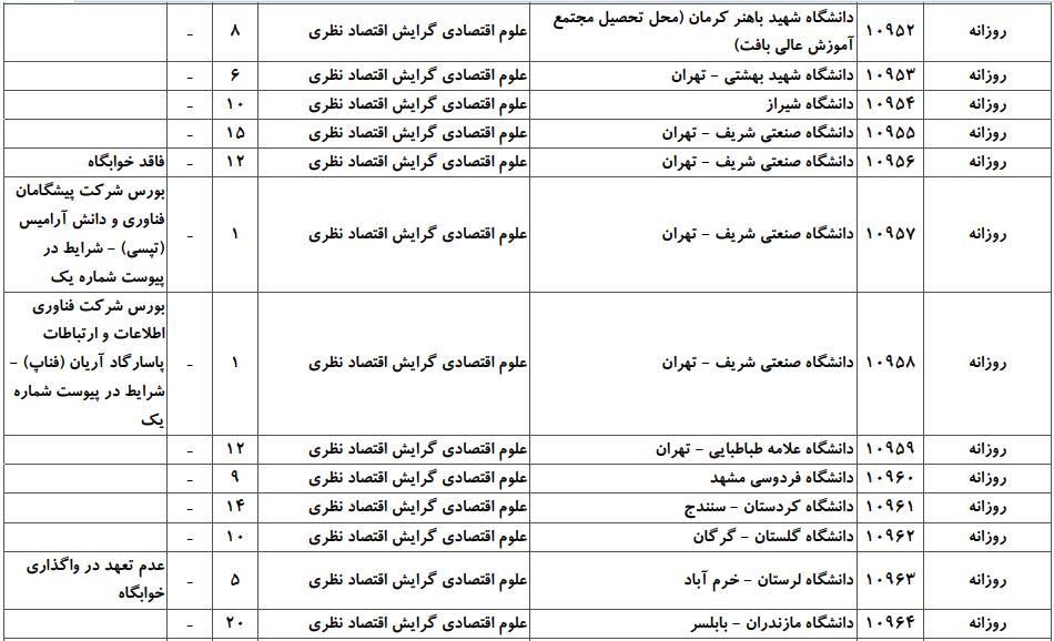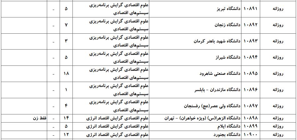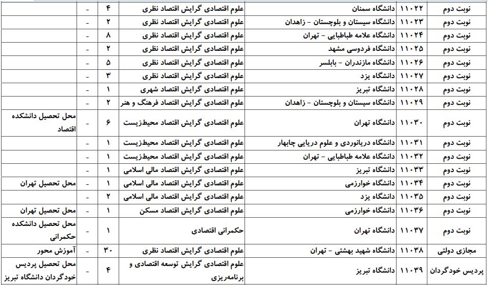 با توجه به این که تغییرات دانشگاههای پذیرنده یک رشته در مقطع کارشناسی ارشد در سالهای مختلف تغییرات زیادی ندارد، دانشگاههای جداول زیر که مربوط به آزمون کارشناسی ارشد سال گذشته است، میتواند به داوطلبان عزیز جهت اطلاع از گرایشهای کارشناسی ارشد علوم اقتصادی و نیز دانشگاههایی که در دورههای مختلف روزانه، شبانه، پردیس، غیرانتفاعی، پیام نور و دانشگاه آزاد اﺳﻼمی در رشته علوم اقتصادی پذیرش دارند، کمک کند.