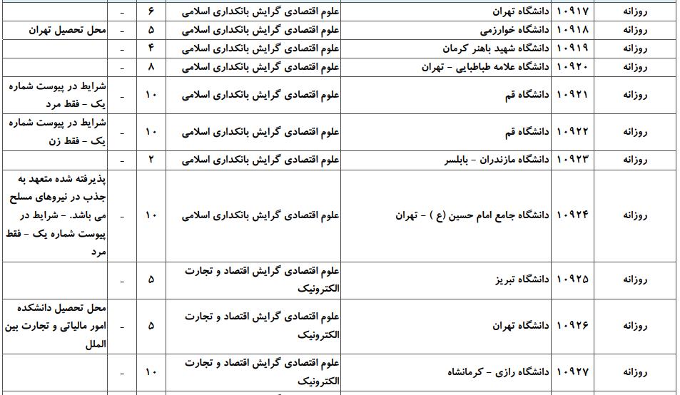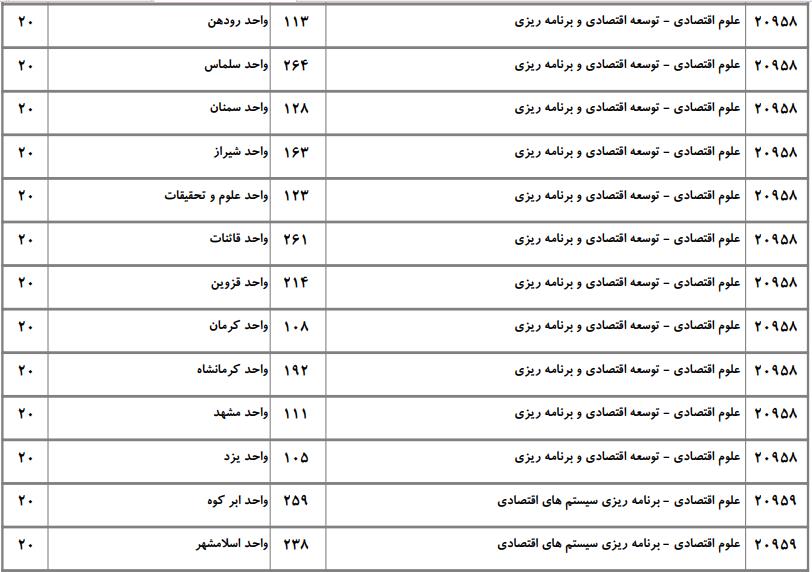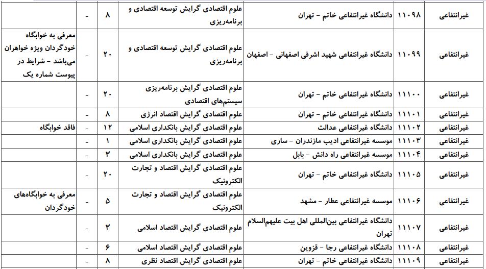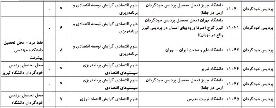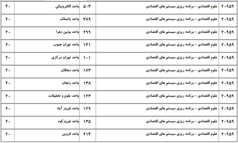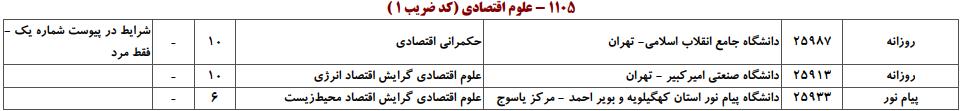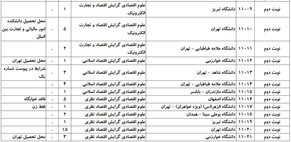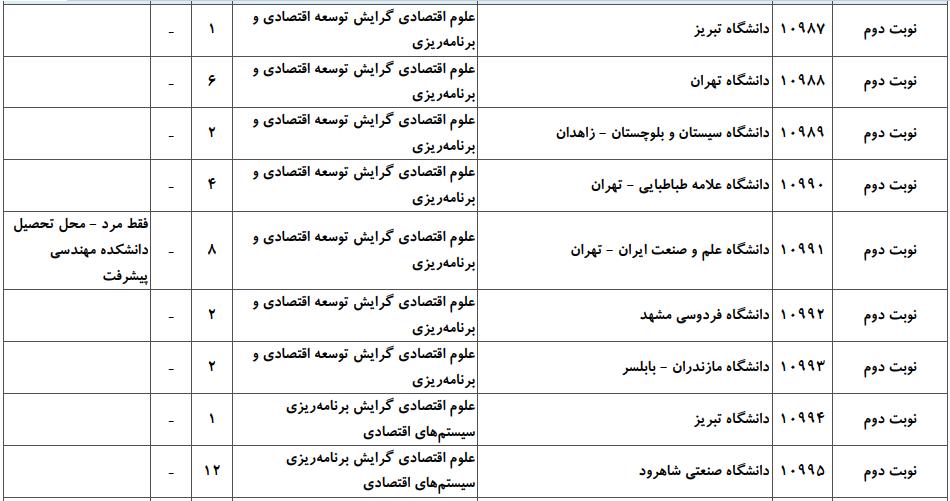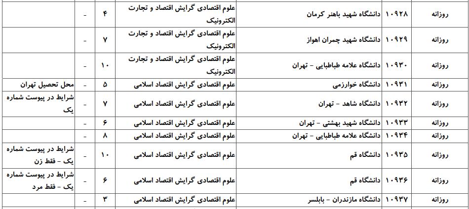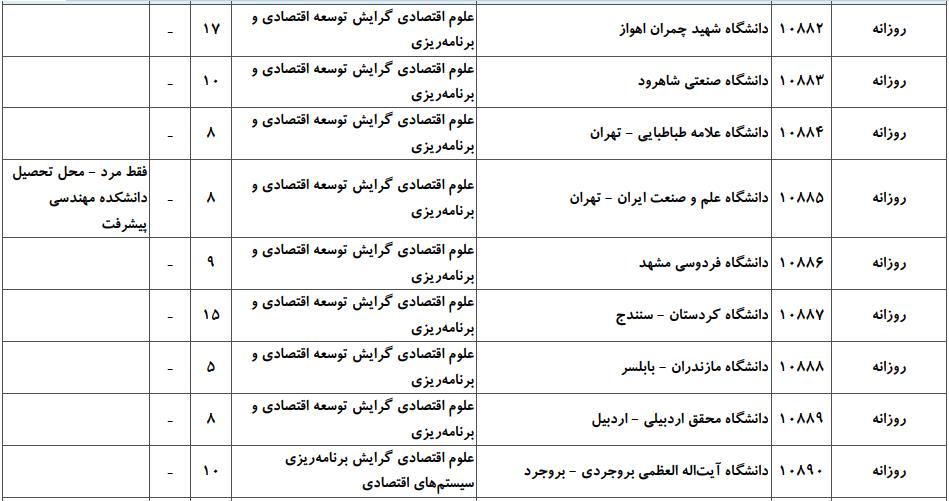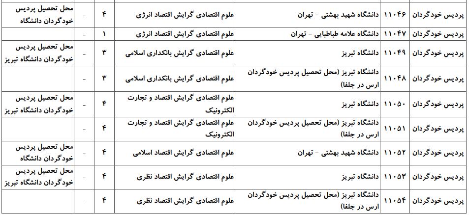 با توجه به این که تغییرات دانشگاههای پذیرنده یک رشته در مقطع کارشناسی ارشد در سالهای مختلف تغییرات زیادی ندارد، دانشگاههای جداول زیر که مربوط به آزمون کارشناسی ارشد سال گذشته است، میتواند به داوطلبان عزیز جهت اطلاع از گرایشهای کارشناسی ارشد علوم اقتصادی و نیز دانشگاههایی که در دورههای مختلف روزانه، شبانه، پردیس، غیرانتفاعی، پیام نور و دانشگاه آزاد اﺳﻼمی در رشته علوم اقتصادی پذیرش دارند، کمک کند.