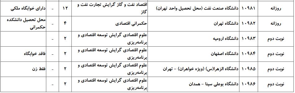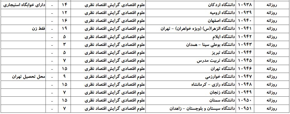 دانشگاه های دارای پذیرش کارشناسی ارشد علوم اقتصادی