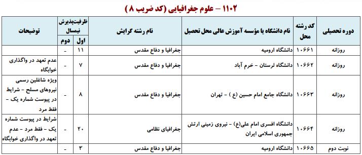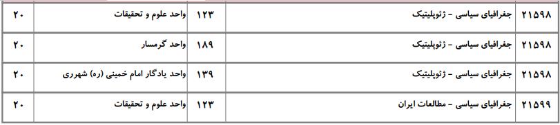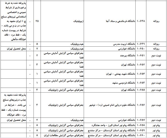 *** پذیرش دانشجو در رشته «ژئوپلیتیک» فقط توسط دانشکده فرماندهی و ستاد ارتش جمهوری اسلامی ایران صورت خواهد گرفت.