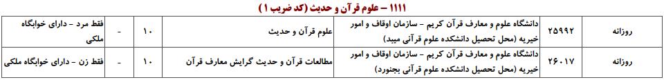 دانشگاه های دارای پذیرش کارشناسی ارشد علوم قرآن و حدیث