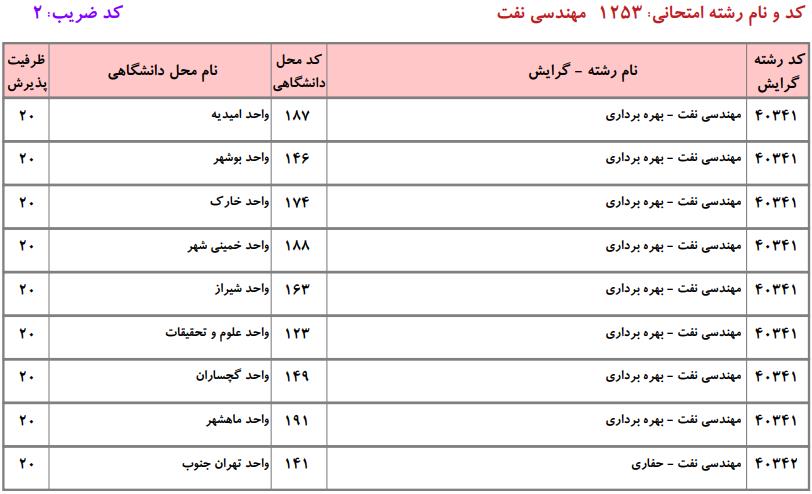 با توجه به این که تغییرات دانشگاههای پذیرنده یک رشته در مقطع کارشناسی ارشد در سالهای مختلف تغییرات زیادی ندارد، دانشگاههای جداول زیر که مربوط به آزمون کارشناسی ارشد سال گذشته است، میتواند به داوطلبان عزیز جهت اطلاع از گرایشهای کارشناسی ارشد مهندسی پلیمر و نیز دانشگاههایی که در دورههای مختلف روزانه، شبانه، پردیس، غیرانتفاعی، پیام نور و دانشگاه آزاد اﺳﻼمی در رشته مهندسی پلیمر پذیرش دارند، کمک کند.