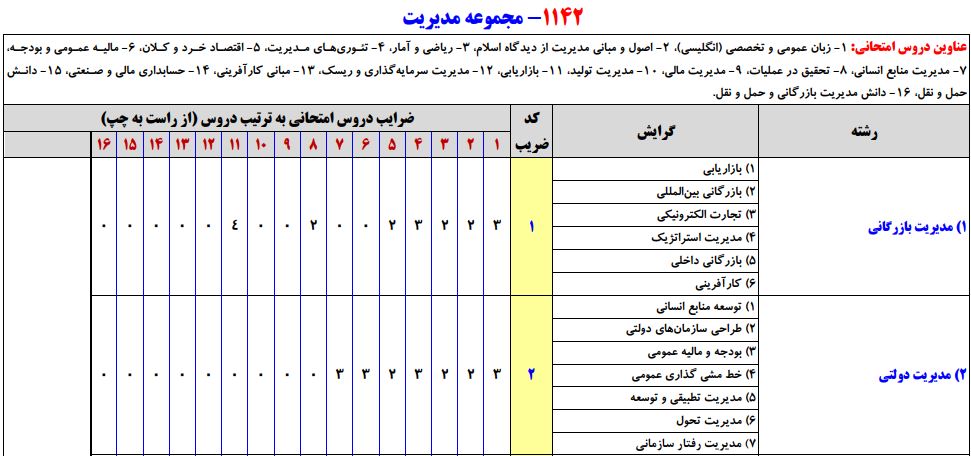 سرفصلهای کنکور کارشناسی ارشد مدیریت به همراه ضرایب مربوطه به شرح زیر است: