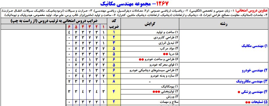 سرفصلهای کنکور کارشناسی ارشد مهندسی مکانیک به همراه ضرایب مربوطه به شرح زیر است: