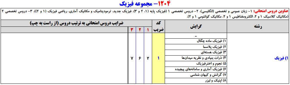 سرفصلهای کنکور کارشناسی ارشد فیزیک به همراه ضرایب مربوطه به شرح زیر است: