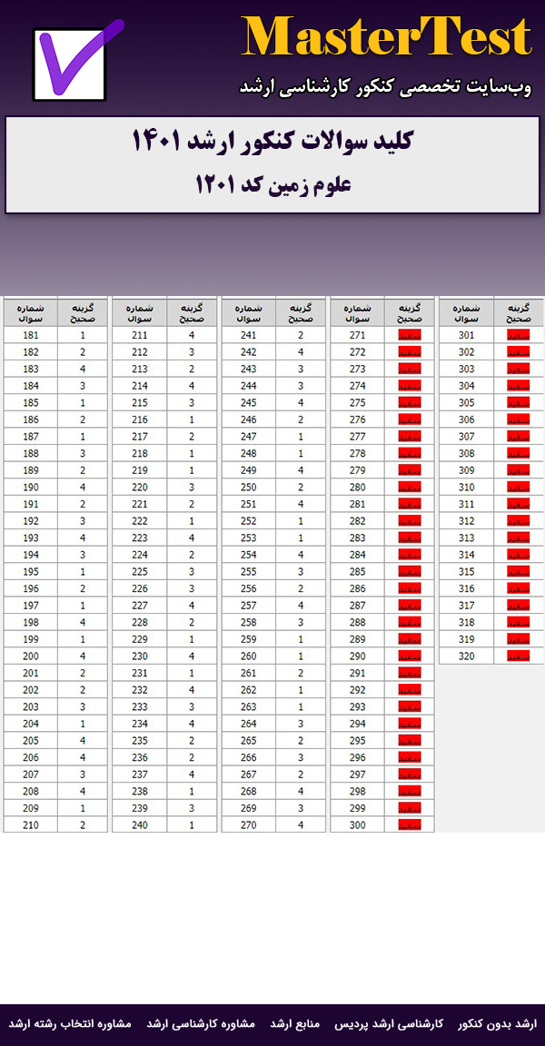سوالات و پاسخنامه کلیدی کنکور کارشناسی ارشد علوم زمین ۱۴۰۱ از طریق این صفحه قابل دریافت است.