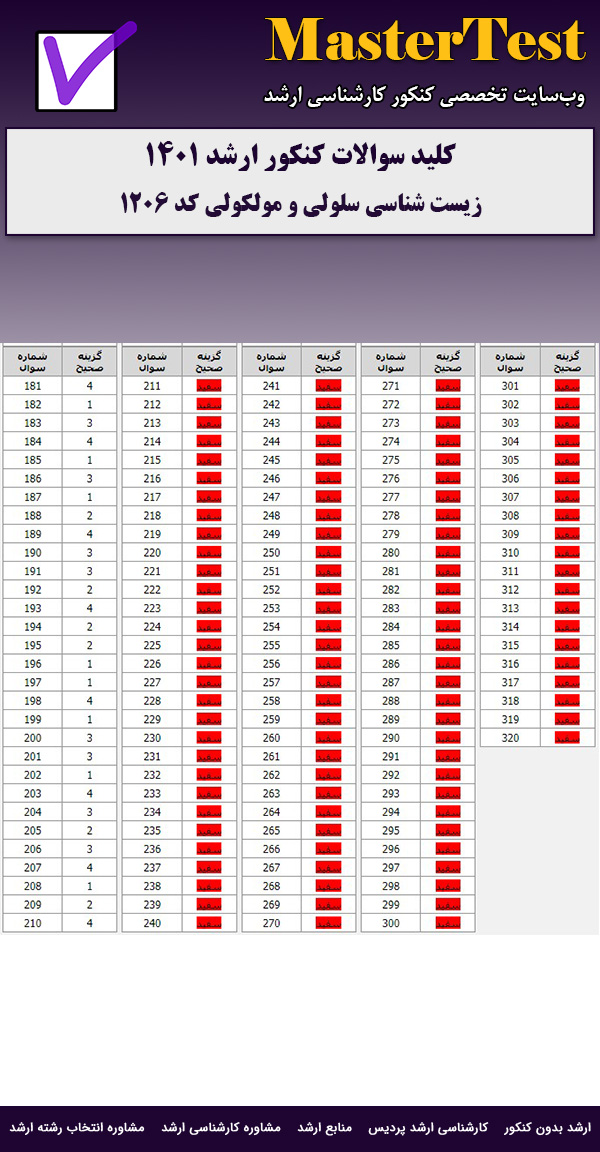 سوالات و پاسخنامه کلیدی کنکور کارشناسی ارشد زیست شناسی سلولی و مولکولی ۱۴۰۱ از طریق این صفحه قابل دریافت است.