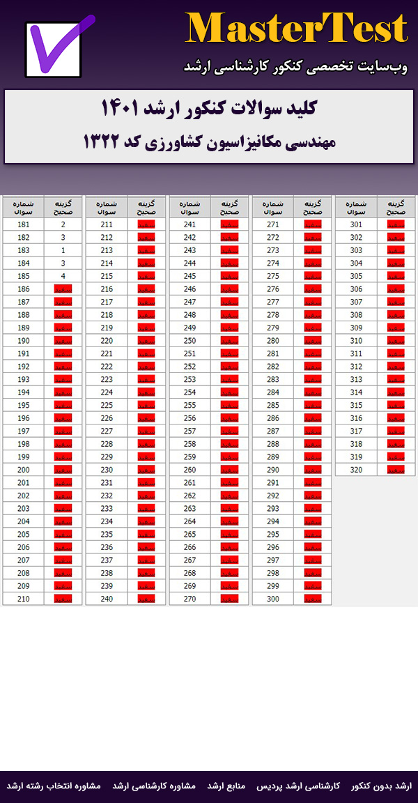 سوالات و پاسخنامه کلیدی کنکور کارشناسی ارشد مهندسی مکانیزاسیون کشاورزی ۱۴۰۱ از طریق این صفحه قابل دریافت است.