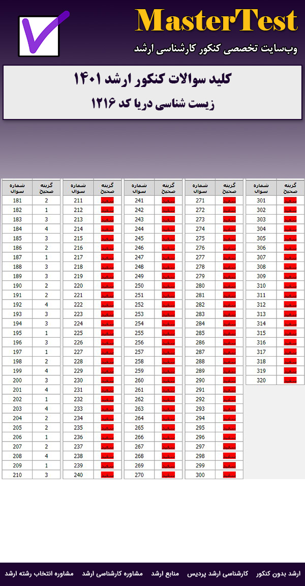 سوالات و پاسخنامه کلیدی کنکور کارشناسی ارشد زیست شناسی دریا ۱۴۰۱ از طریق این صفحه قابل دریافت است.