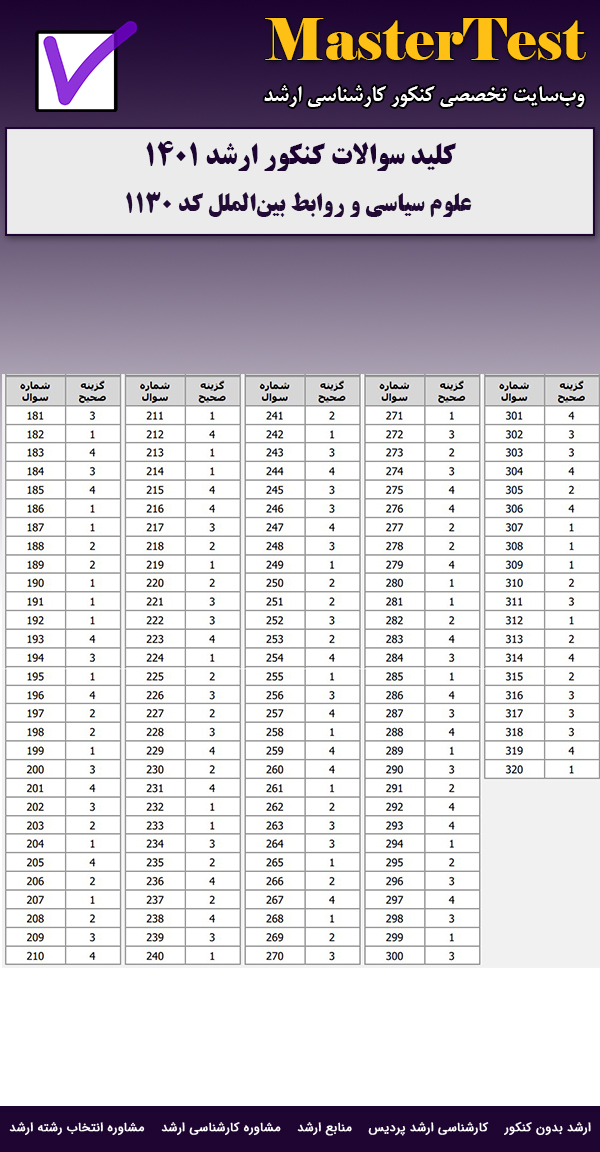 سوالات و پاسخنامه کلیدی کنکور کارشناسی ارشد علوم سیاسی و روابط بین الملل ۱۴۰۱ از طریق این صفحه قابل دریافت است.