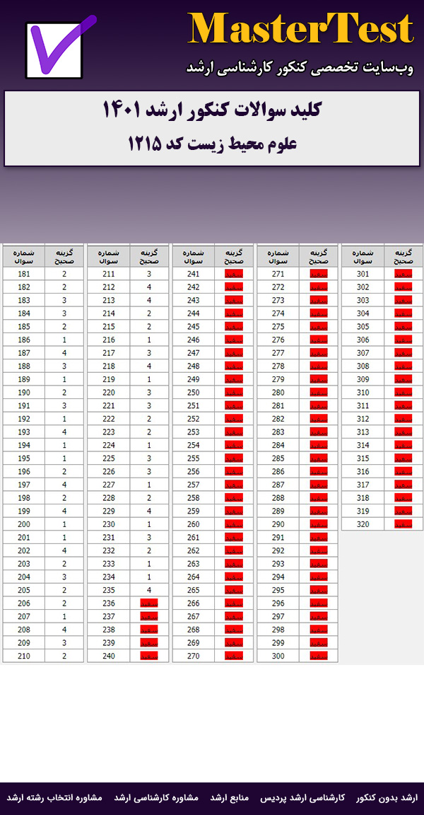 سوالات و پاسخنامه کلیدی کنکور کارشناسی ارشد علوم محیط زیست ۱۴۰۱ از طریق این صفحه قابل دریافت است.