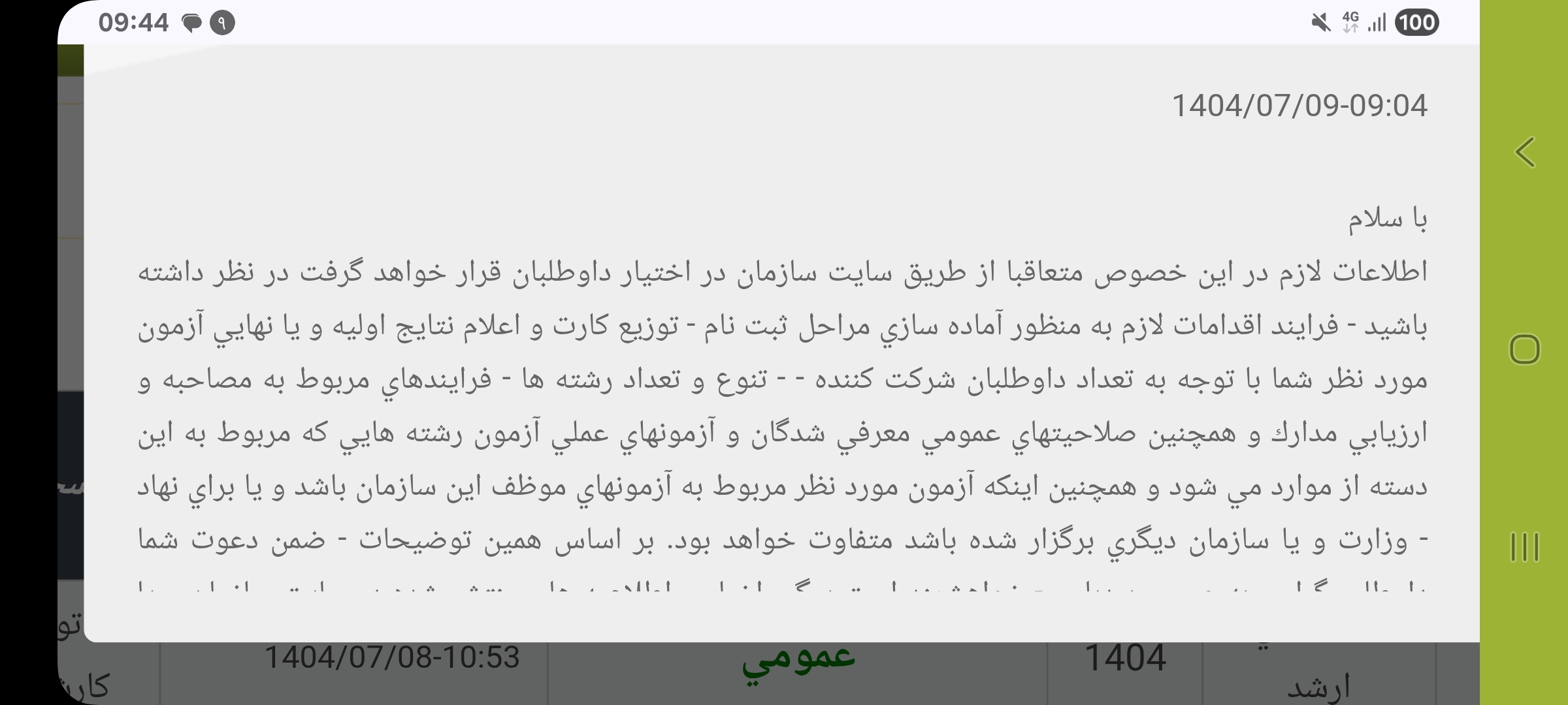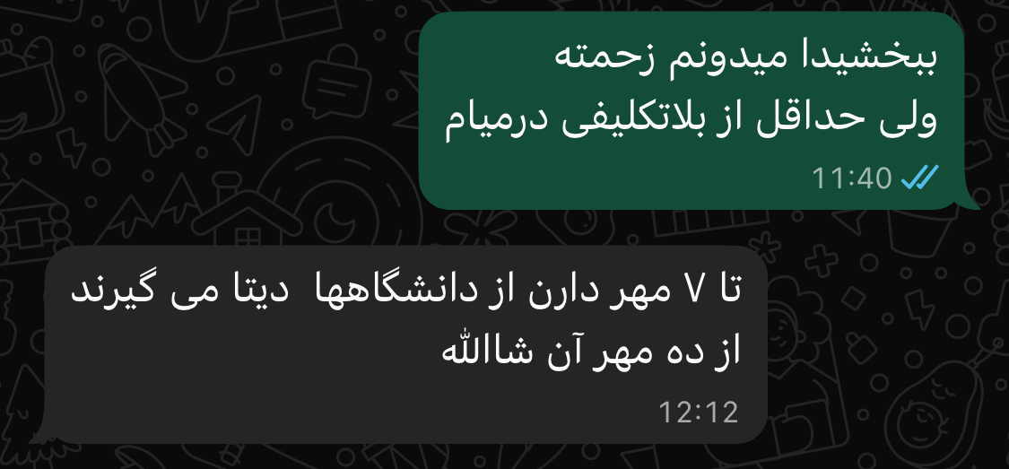 اینم متن جوابشون هست:( تا ۷ مهر دارن از دانشگاهها دیتا می گیرند