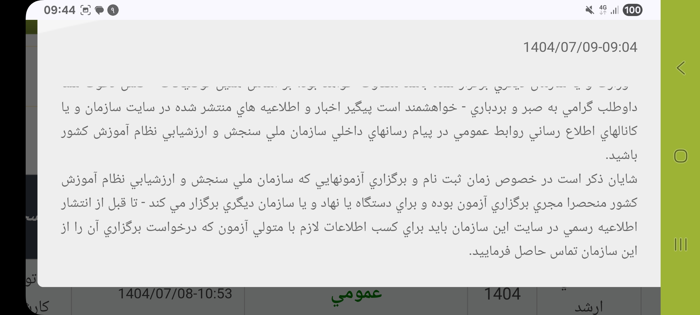 سلام من صبح به سازمان سنجش پیام دادم به من گفتن تا نیمه مهر اطلاع رسانی میشه