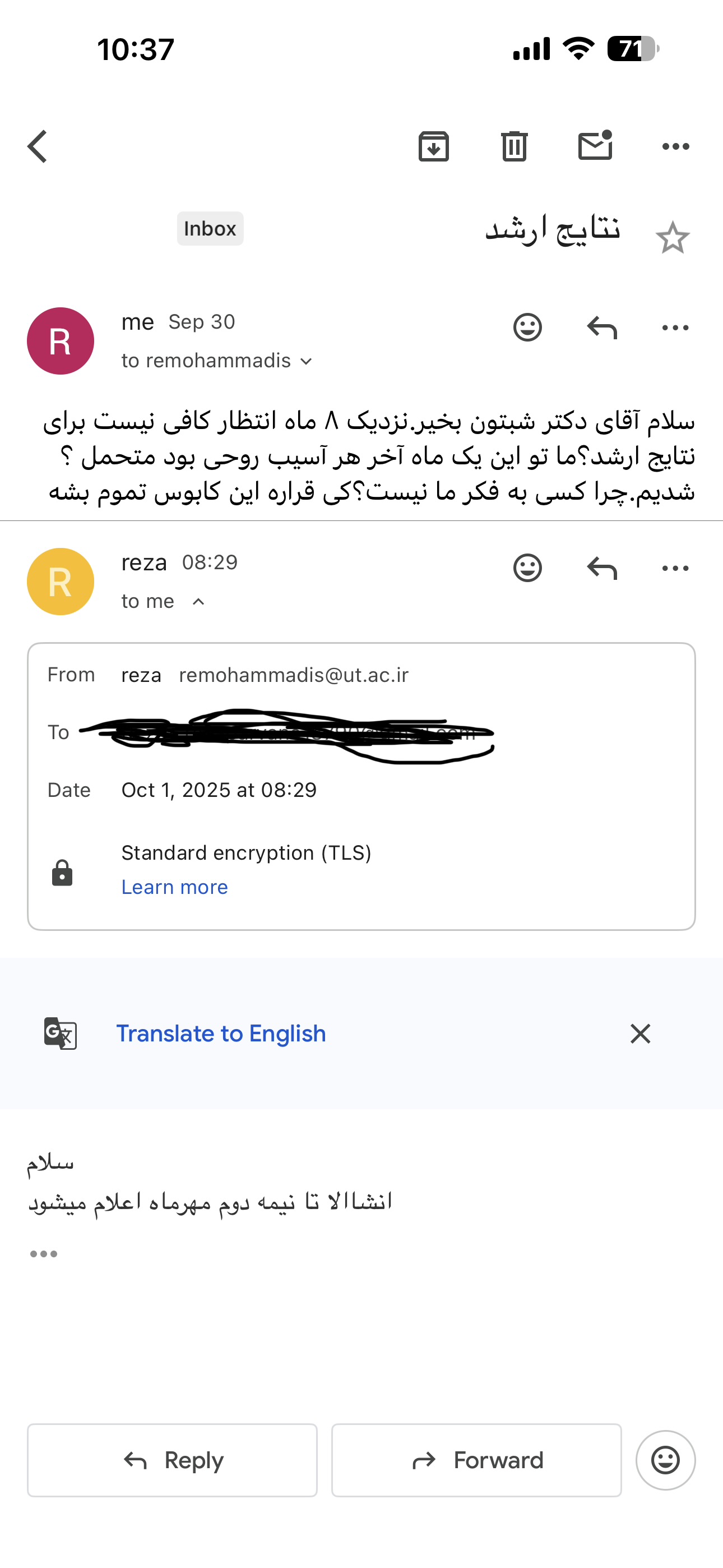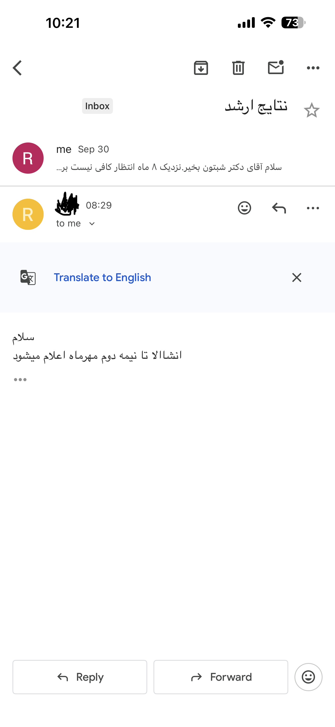 ۱۰ روز پیش من بهشون ایمیل دادم و نیم ساعت بعد جواب دادن که نتایج تا ۷ مهر نمیاد. ولی دو شب پیش که دوباره بهشون ایمیل دادم تا الان جواب ندادن.
