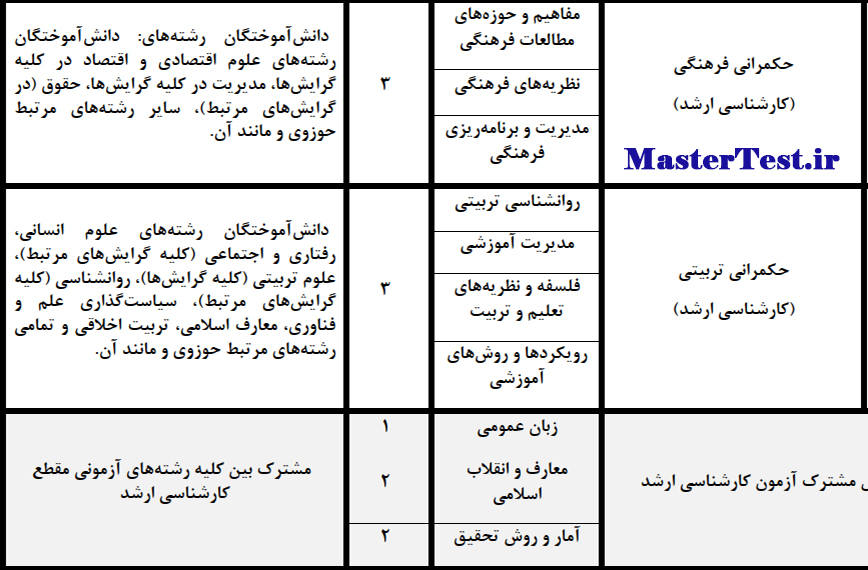 * تبصره ۱: افراد دارای مدرک تحصیلی کارشناسی ارشد در یکی از رشتههای مرتبط، مشروط بر آنکه دوره خود را در دانشگاههای دولتی طی نکرده باشند. مجاز به شرکت در آزمون میباشند.